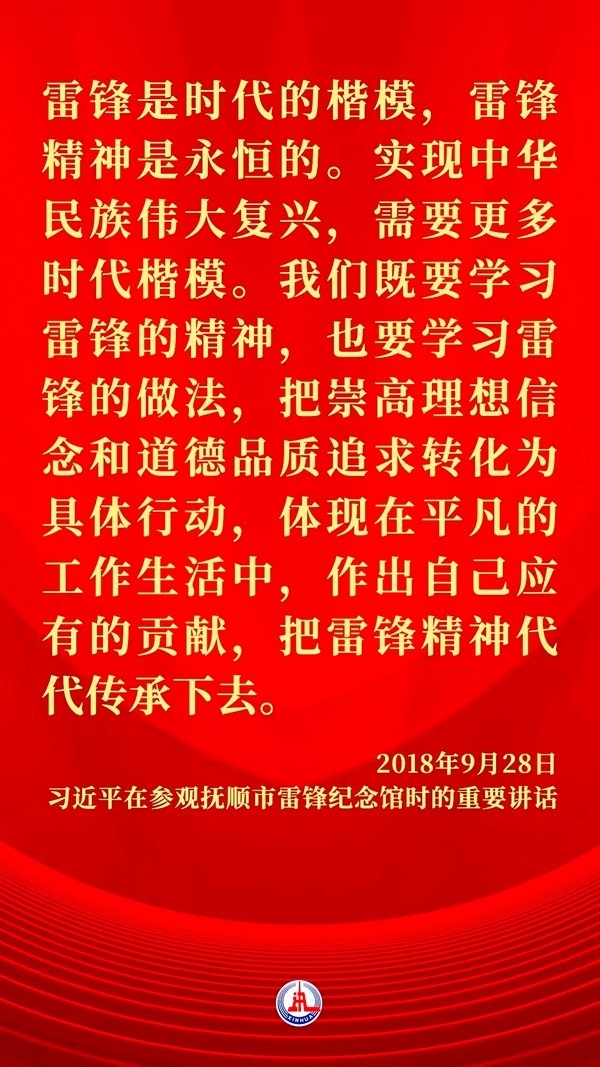 “雷鋒是時代的楷模,雷鋒精神是永恒的。實現(xiàn)中華民族偉大復(fù)興,需要更多時代楷模?!绷暯娇倳浀奶栒伲瑔酒饍|萬人奮斗與堅守。新時代,雷鋒精神是持續(xù)激發(fā)崇德向善的磅礴偉力;新時代“雷鋒”,在新征程上頑強拼搏,匯聚起共和國奔騰向前的時代潮流!