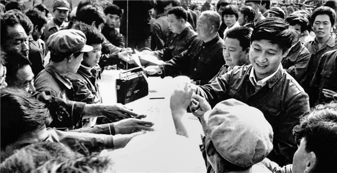△1983年,時(shí)任河北正定縣委書(shū)記的習(xí)近平,臨時(shí)在大街上擺桌子聽(tīng)取老百姓意見(jiàn)。