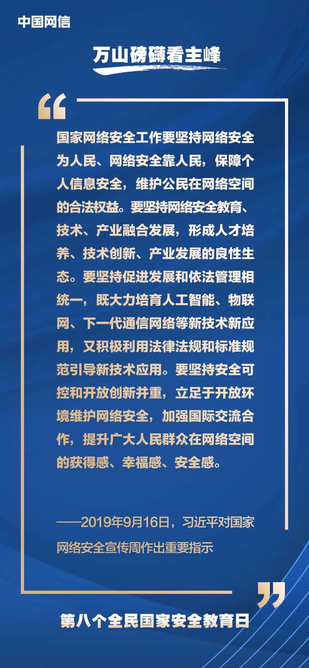 國家安全是安邦定國的重要基石,維護(hù)國家安全是全國各族人民根本利益所在。2023年4月15日是第八個全民國家安全教育日,今年的主題是“貫徹總體國家安全觀,增強(qiáng)全民國家安全意識和素養(yǎng),夯實以新安全格局保障新發(fā)展格局的社會基礎(chǔ)”。沒有網(wǎng)絡(luò)安全就沒有國家安全,以下摘取習(xí)近平總書記關(guān)于“網(wǎng)絡(luò)安全”的重要論述,與你一起回顧學(xué)習(xí)。