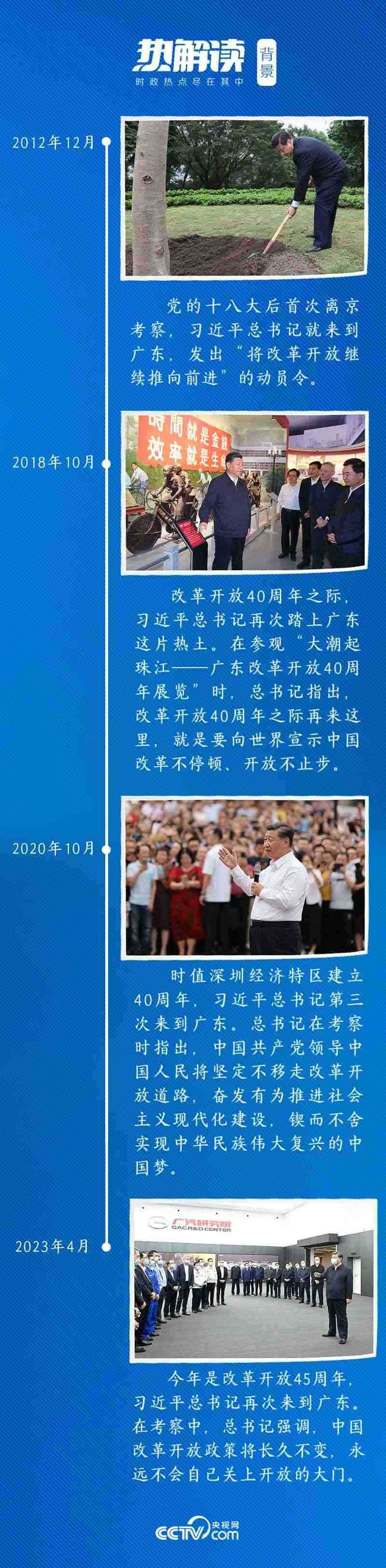 改革開放是廣東最鮮明特征。黨的十八大以來,習(xí)近平總書記四次到廣東考察,“改革開放”每次都是考察的關(guān)鍵詞。