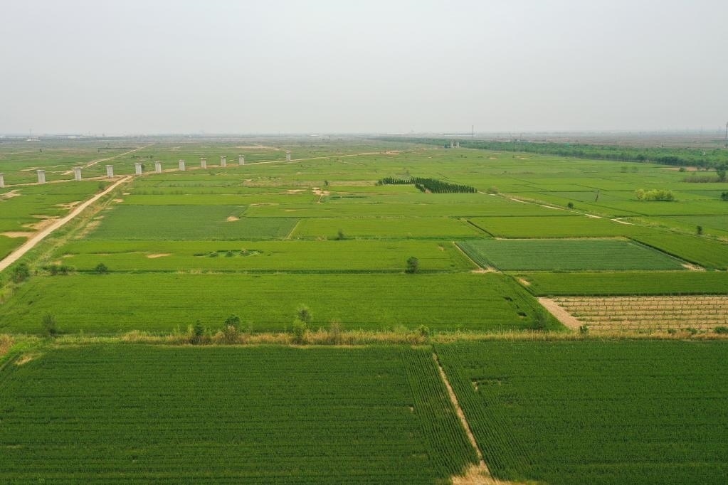 5月11日拍攝的黃驊市舊城鎮(zhèn)仙莊片區(qū)旱堿地麥田(無(wú)人機(jī)照片)。新華社記者 牟宇 攝
