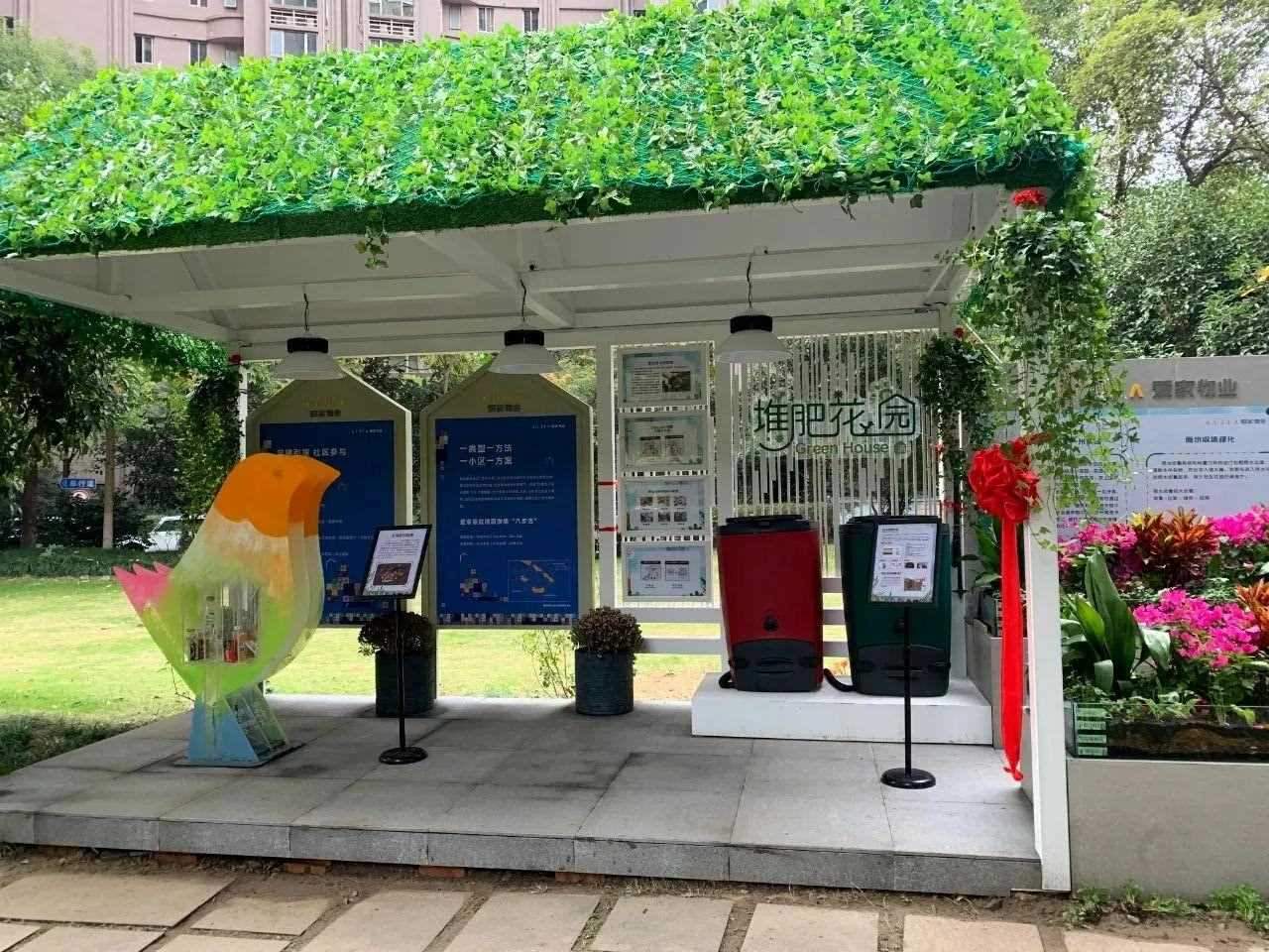 在愛家豪庭小區(qū)的“環(huán)保小屋”,土壤下面的“織物層”是居民用廢舊衣物鋪出來的,一旁是可以把濕垃圾轉(zhuǎn)化成花草肥料的“堆肥桶”。集時尚與科技于一體,這方綠意盎然的小天地成為垃圾分類與環(huán)保公益的宣傳陣地。