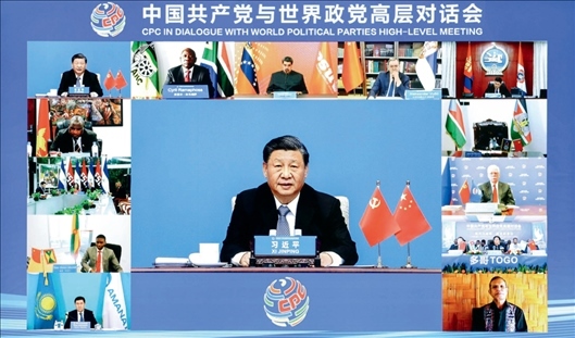2023年3月15日,北京,中共中央總書記、國家主席習近平在中國共產(chǎn)黨與世界政黨高層對話會上發(fā)表題為《攜手同行現(xiàn)代化之路》的主旨講話,并首次提出全球文明倡議。圖/新華社記者 黃敬文 攝