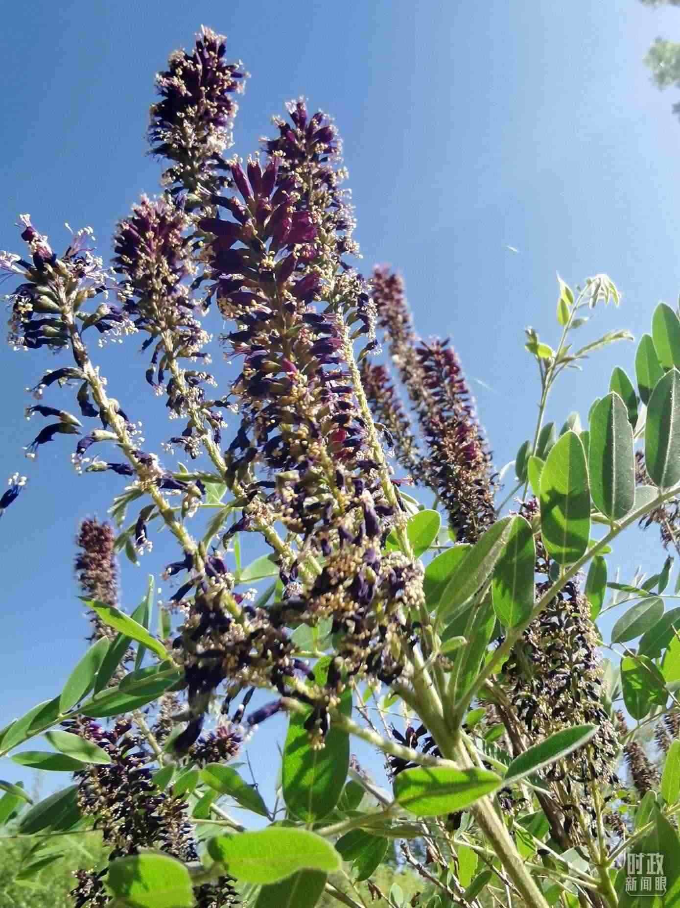 △新華林場(chǎng)內(nèi)種植的紫穗槐。(總臺(tái)央視記者楊波拍攝)