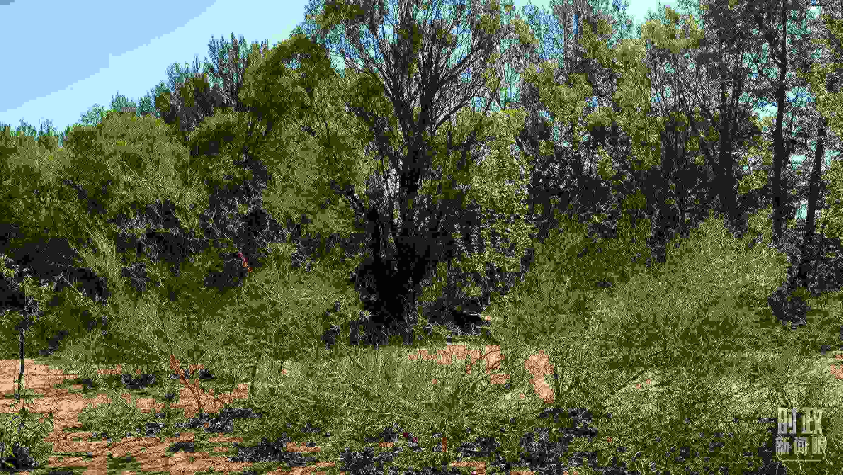 △喬灌草相結(jié)合的植被恢復(fù)模式。(總臺(tái)央視記者石丞拍攝)