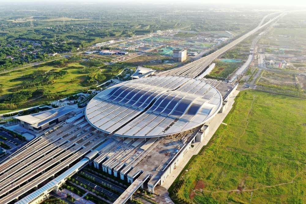 這是雄安站(6月2日攝,無(wú)人機(jī)照片)。雄安站位于雄安新區(qū)昝崗片區(qū),是雄安新區(qū)開工建設(shè)的第一個(gè)重大基礎(chǔ)設(shè)施項(xiàng)目,具有標(biāo)志性意義。新華社記者 朱旭東 攝