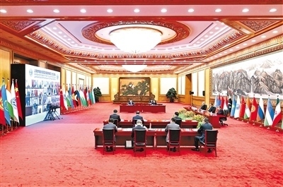 7月4日下午,國家主席習近平在北京以視頻方式出席上海合作組織成員國元首理事會第二十三次會議并發(fā)表題為《牢記初心使命 堅持團結協(xié)作 實現(xiàn)更大發(fā)展》的重要講話。新華社記者 申 宏攝