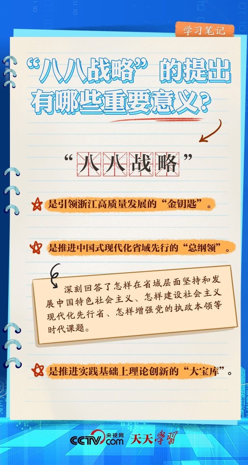 什么是“八八戰(zhàn)略”?“八八戰(zhàn)略”的時(shí)代價(jià)值有哪些?央視網(wǎng)《天天學(xué)習(xí)·學(xué)習(xí)筆記》帶您一起了解。