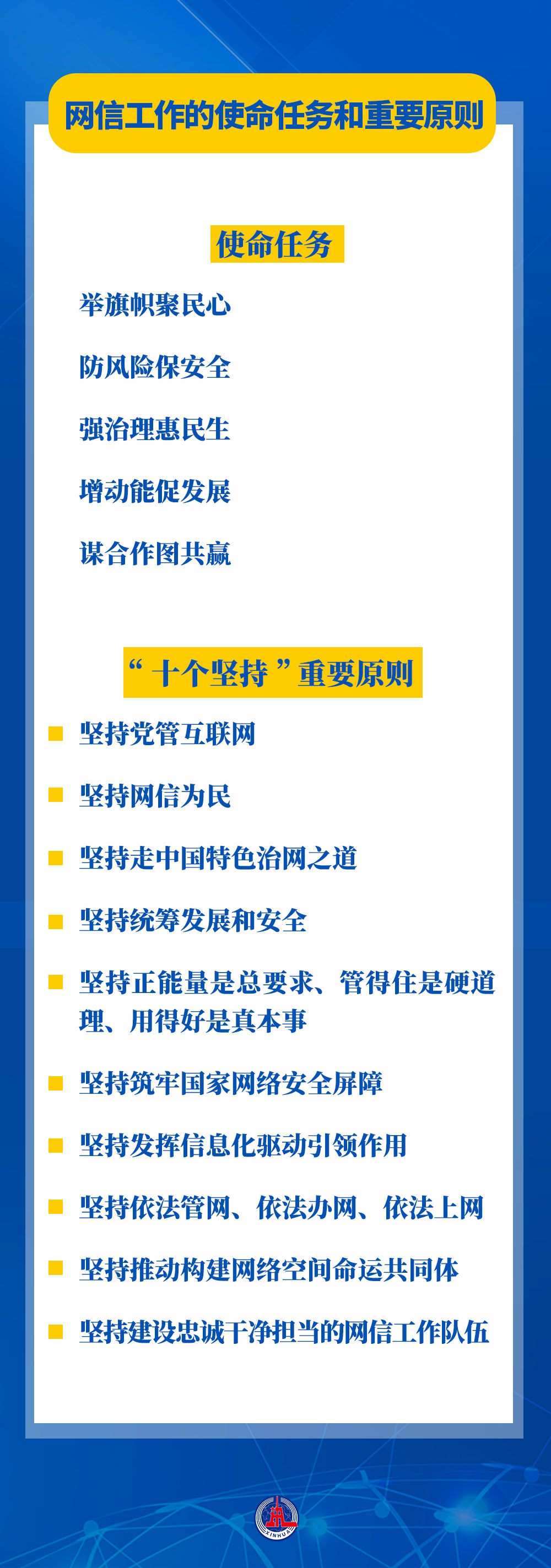 習(xí)近平總書記鮮明提出的網(wǎng)信工作“5個(gè)方面、30個(gè)字”的使命任務(wù),涵蓋互聯(lián)網(wǎng)內(nèi)容建設(shè)、網(wǎng)絡(luò)安全、網(wǎng)絡(luò)惠民、信息化建設(shè)、國際網(wǎng)絡(luò)空間治理等,“十個(gè)堅(jiān)持”重要原則進(jìn)一步豐富和發(fā)展了習(xí)近平總書記關(guān)于網(wǎng)絡(luò)強(qiáng)國的重要思想,把黨對(duì)網(wǎng)信工作的規(guī)律性認(rèn)識(shí)提升到全新高度。總書記提出的使命任務(wù)和重要原則,具有很強(qiáng)的政治性、戰(zhàn)略性、指導(dǎo)性,既著眼當(dāng)前,又謀深慮遠(yuǎn),為做好新時(shí)代新征程網(wǎng)信工作指明了前進(jìn)方向,為推進(jìn)實(shí)現(xiàn)網(wǎng)絡(luò)強(qiáng)國提供了根本遵循。