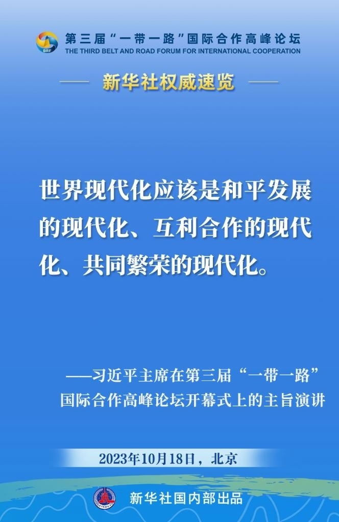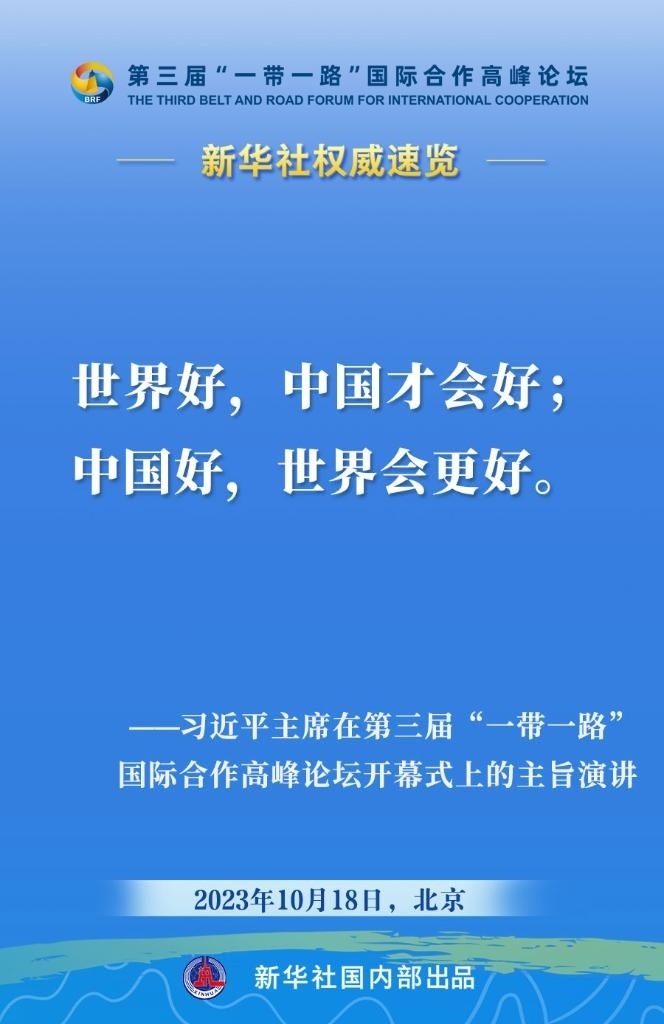 10月18日,國(guó)家主席習(xí)近平在第三屆“一帶一路”國(guó)際合作高峰論壇開(kāi)幕式上發(fā)表主旨演講。一起來(lái)看金句。