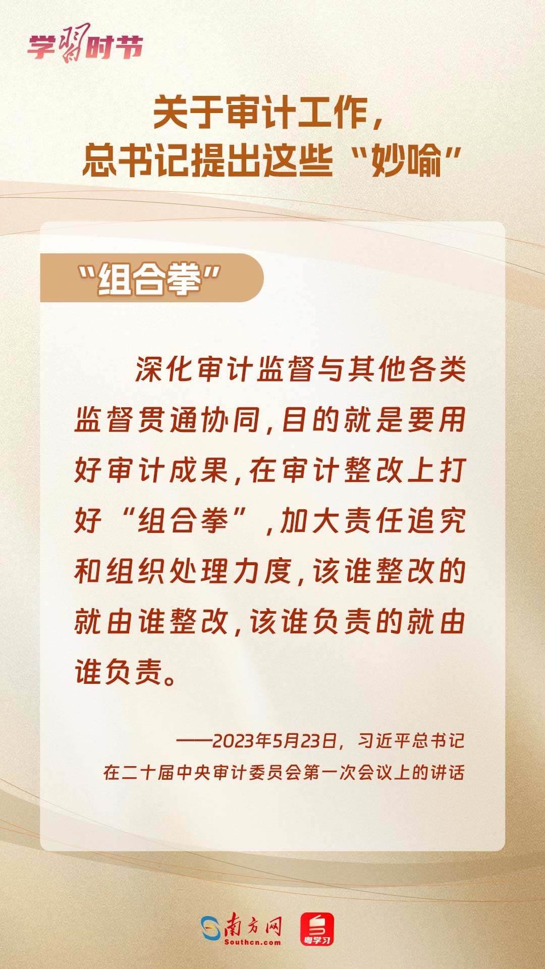 11月1日出版的《求是》雜志刊登了習(xí)近平總書(shū)記在二十屆中央審計(jì)委員會(huì)第一次會(huì)議上的講話全文。總書(shū)記在重要講話中“妙喻”審計(jì)工作,讓我們一同學(xué)習(xí)。