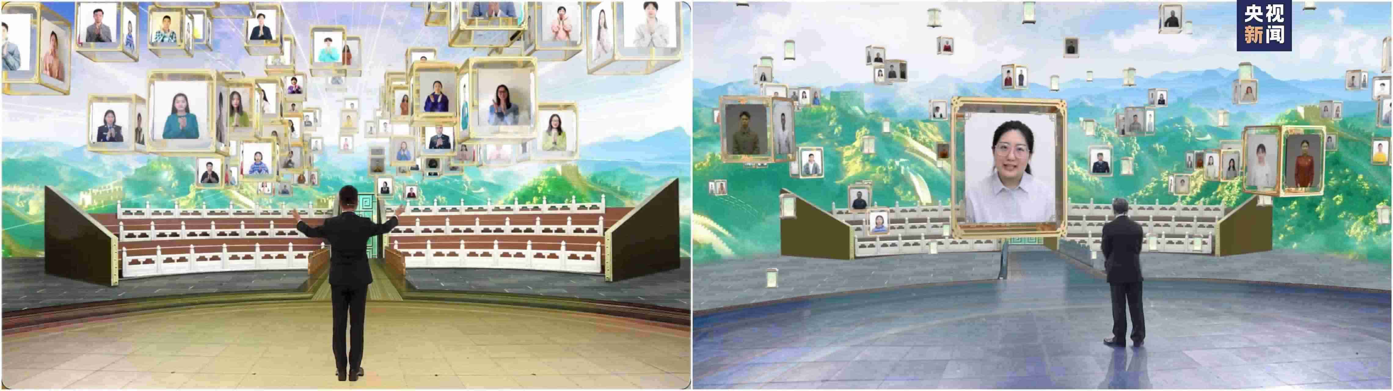 在演播室視覺呈現(xiàn)上,節(jié)目用約1500平方米的大屏幕全景構建整體化視覺窗口,緊扣主題挖掘核心設計意象:歷史中的典故,典故中的智慧,智慧中的文字。層層書頁展現(xiàn)文明的厚重,點點光芒象征智慧的結晶,道道光線代表思想的傳承和弘揚……形成了獨屬于《平“語”近人》節(jié)目品牌的主視覺空間場。