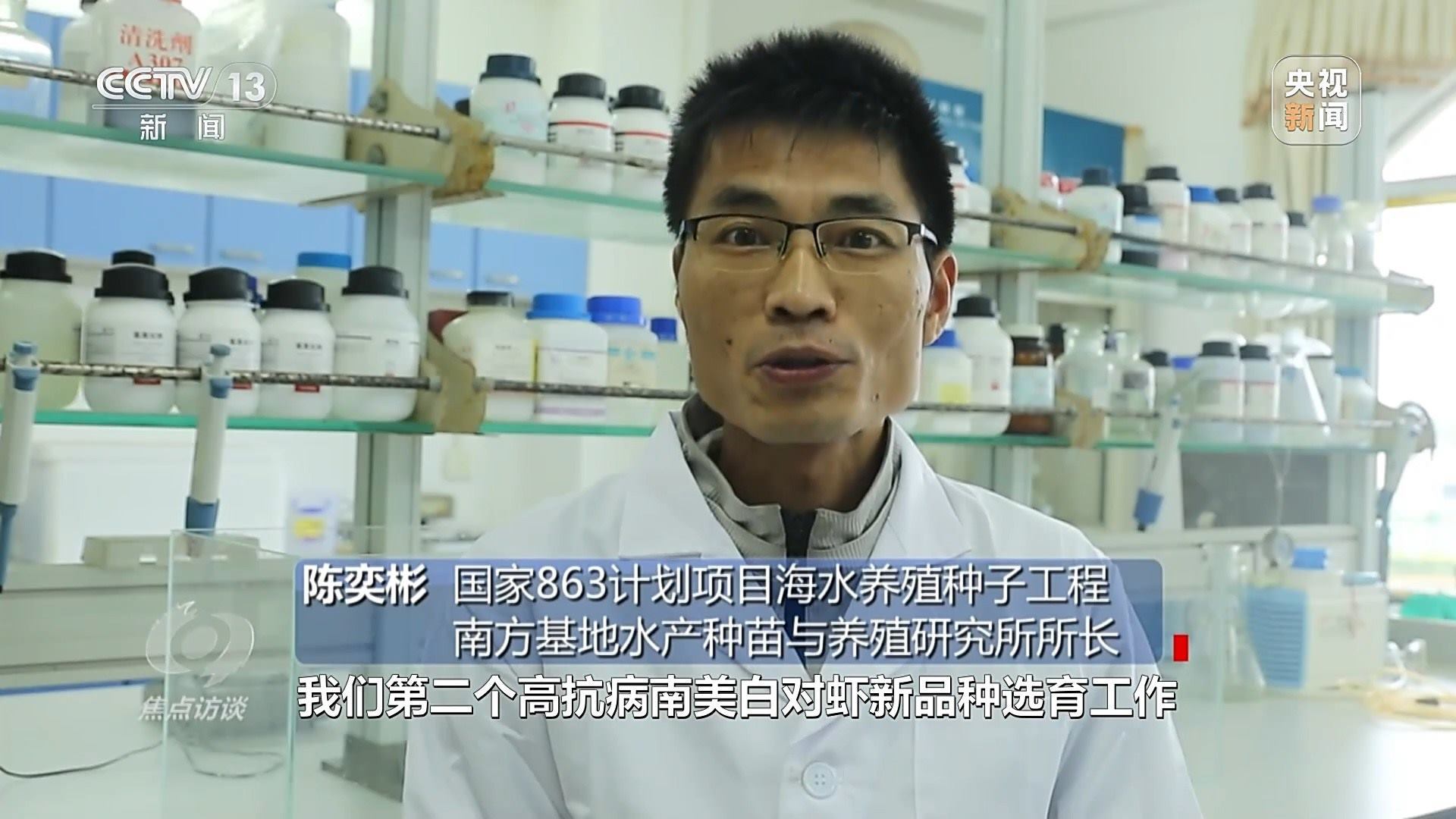 陳奕彬:“我們第二個(gè)高抗病南美白對(duì)蝦新品種選育工作,取得了關(guān)鍵性突破,讓人很振奮。2023年,還有一件令我更振奮的事情,就是習(xí)總書(shū)記來(lái)我們基地,我見(jiàn)到了總書(shū)記。”