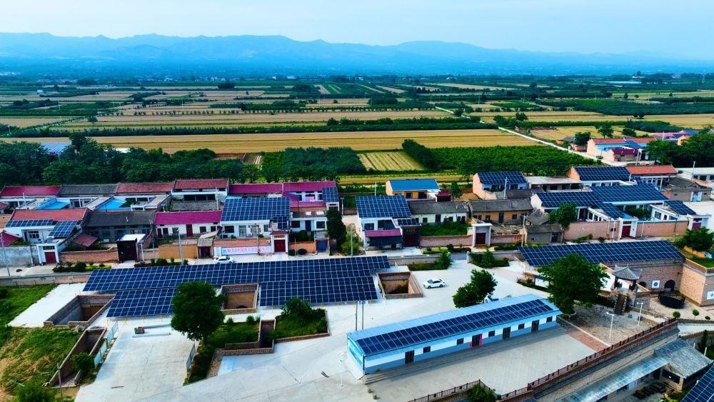 位于黃河岸邊的山西運(yùn)城莊上村,工作人員加緊三期光伏鋪設(shè),荒廢窯洞變成了光伏庭院,荒坡荒地改造成了光伏廊道,村民生產(chǎn)生活全部電氣化。包括山西在內(nèi),北京、廣東等10個(gè)省區(qū)市的鄉(xiāng)村,屋頂光伏工程正全面推開。