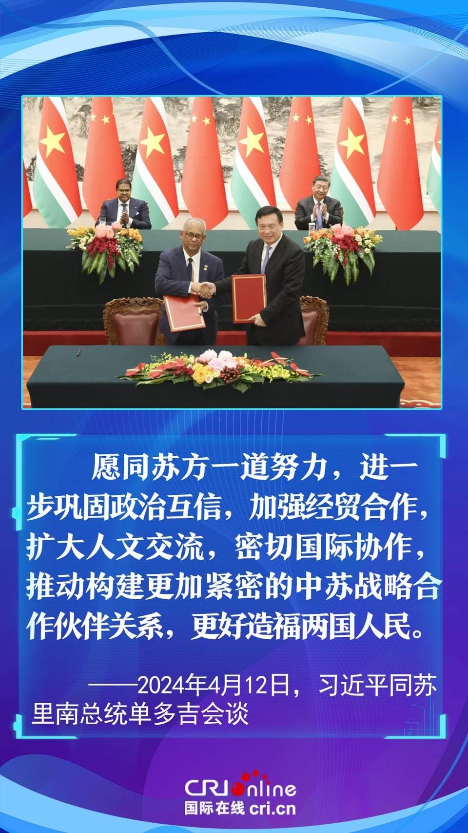 今年是中國和蘇里南建立戰(zhàn)略合作伙伴關系五周年。習近平主席在會談中以“源遠流長、歷久彌堅”為中蘇友誼增添了新的注解,為推動構建更加緊密的中蘇戰(zhàn)略合作伙伴關系指明了方向。