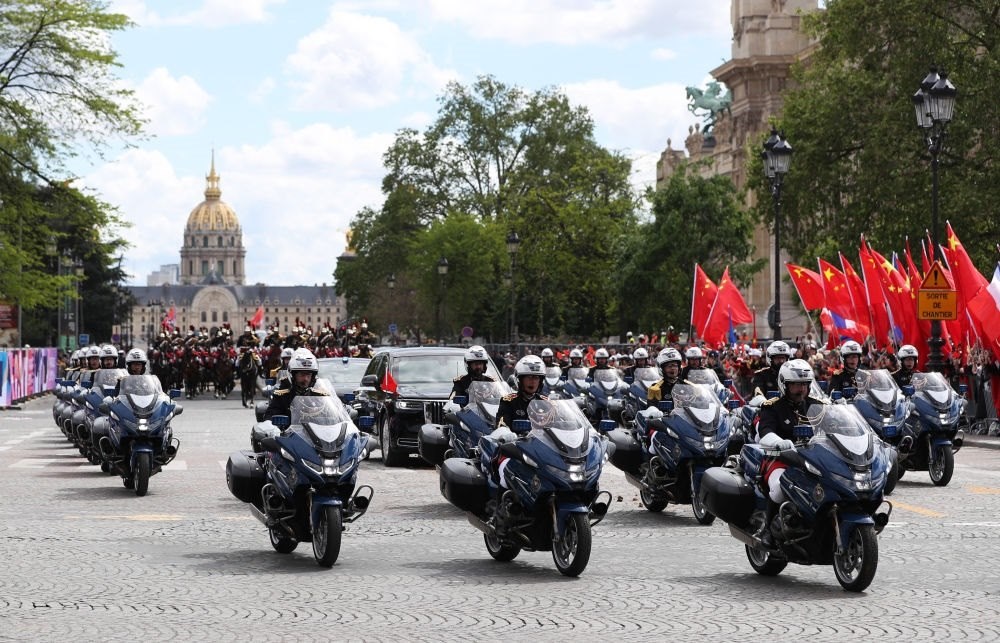 當地時間5月6日下午,正在法國進行國事訪問的國家主席習近平在巴黎出席法國總統(tǒng)馬克龍舉行的隆重盛大歡迎儀式。這是歡迎儀式后,習近平和夫人彭麗媛在共和國衛(wèi)隊148名騎兵組成的禮兵馬隊和摩托車隊護衛(wèi)下,乘車前往愛麗舍宮。新華社記者 高靜 攝