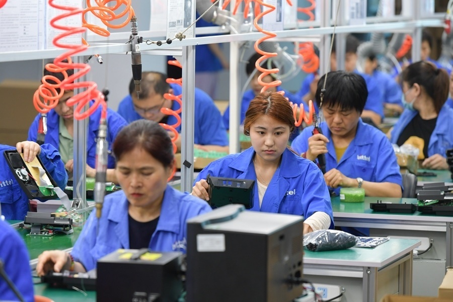 2024年5月22日,在位于日照市東港區(qū)新舊動能轉(zhuǎn)換示范基地的山東比特智能科技股份有限公司新廠區(qū),工人在車間內(nèi)工作。新華社記者 孟濤 攝