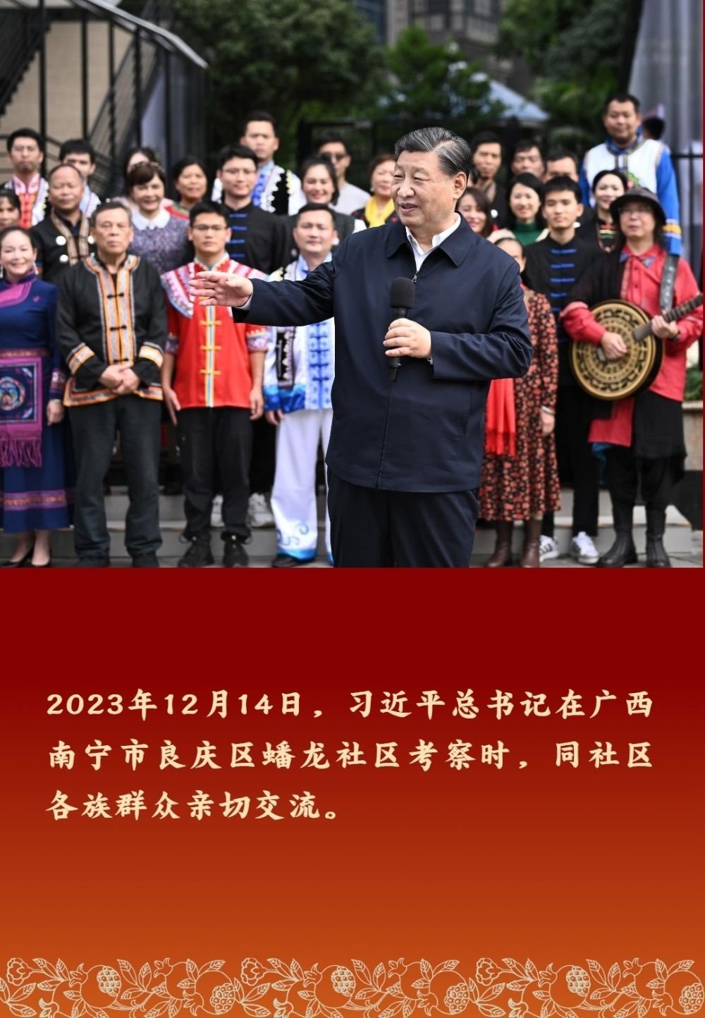 以習(xí)近平同志為核心的黨中央高度重視民族工作,十分關(guān)心少數(shù)民族群眾。習(xí)近平總書(shū)記多次深入民族地區(qū)考察調(diào)研,同各族群眾親切交流,勉勵(lì)大家鑄牢中華民族共同體意識(shí),像石榴籽那樣緊緊抱在一起。