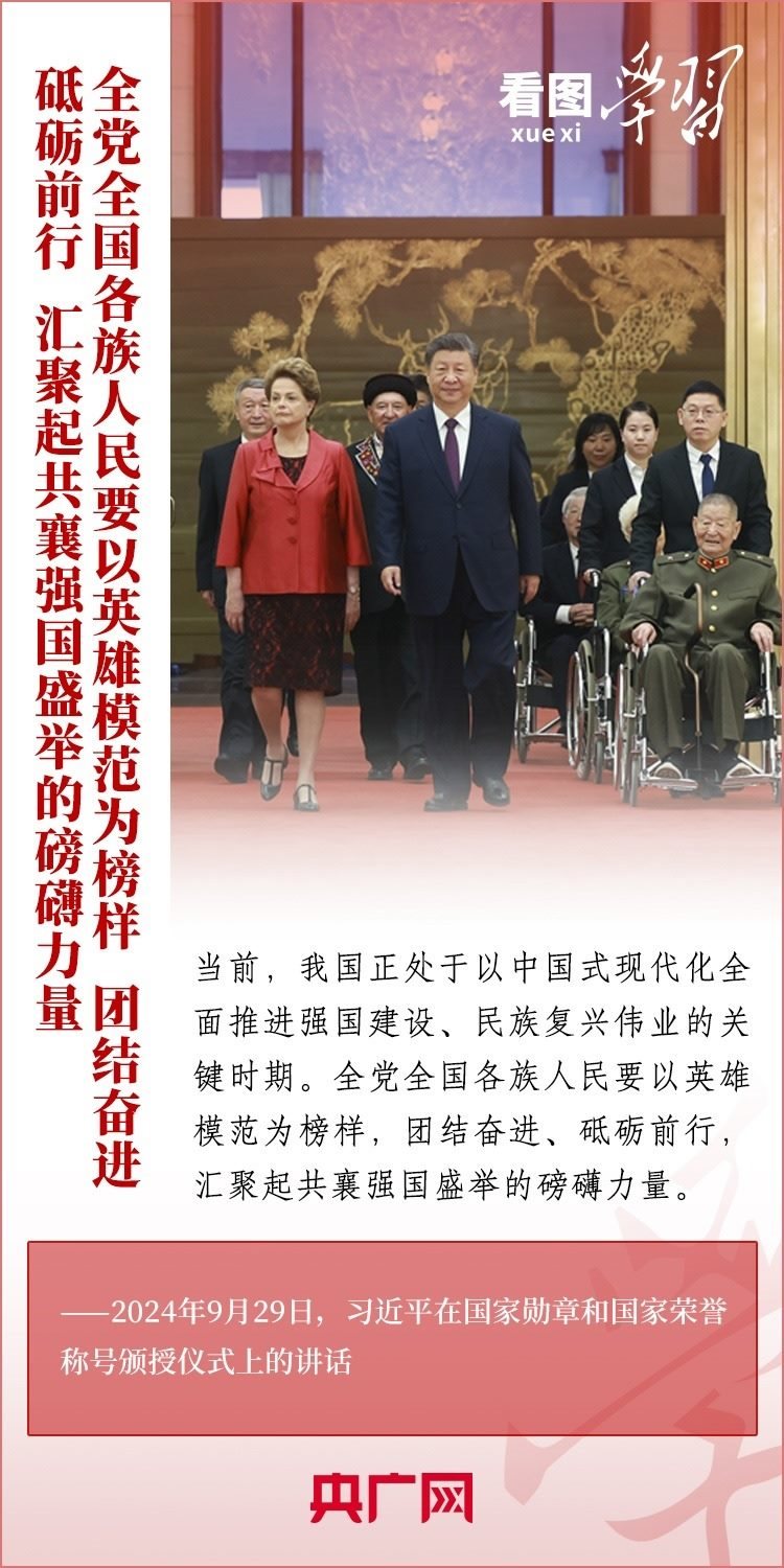 9月29日,中華人民共和國(guó)國(guó)家勛章和國(guó)家榮譽(yù)稱號(hào)頒授儀式在北京舉行,習(xí)近平總書記向國(guó)家勛章和國(guó)家榮譽(yù)稱號(hào)獲得者頒授勛章獎(jiǎng)?wù)虏l(fā)表重要講話??倳洀?qiáng)調(diào),全黨全國(guó)各族人民要以英雄模范為榜樣,團(tuán)結(jié)奮進(jìn)、砥礪前行,匯聚起共襄強(qiáng)國(guó)盛舉的磅礴力量。一起來學(xué)習(xí)!