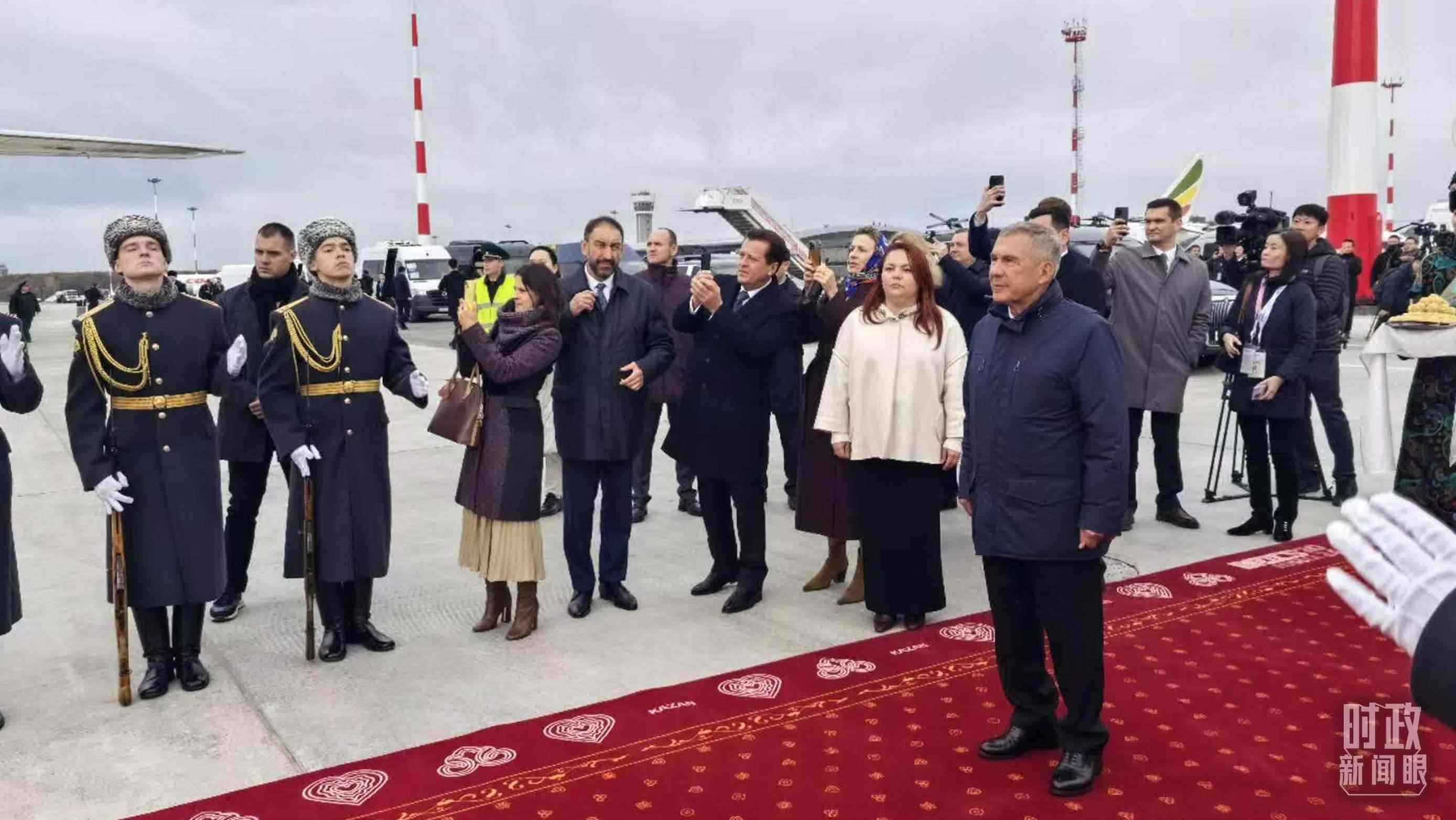 △ 習(xí)主席專機抵達(dá)喀山國際機場時,俄羅斯聯(lián)邦韃靼斯坦共和國行政長官等在機場熱情迎接。(總臺央視記者王鵬飛拍攝)