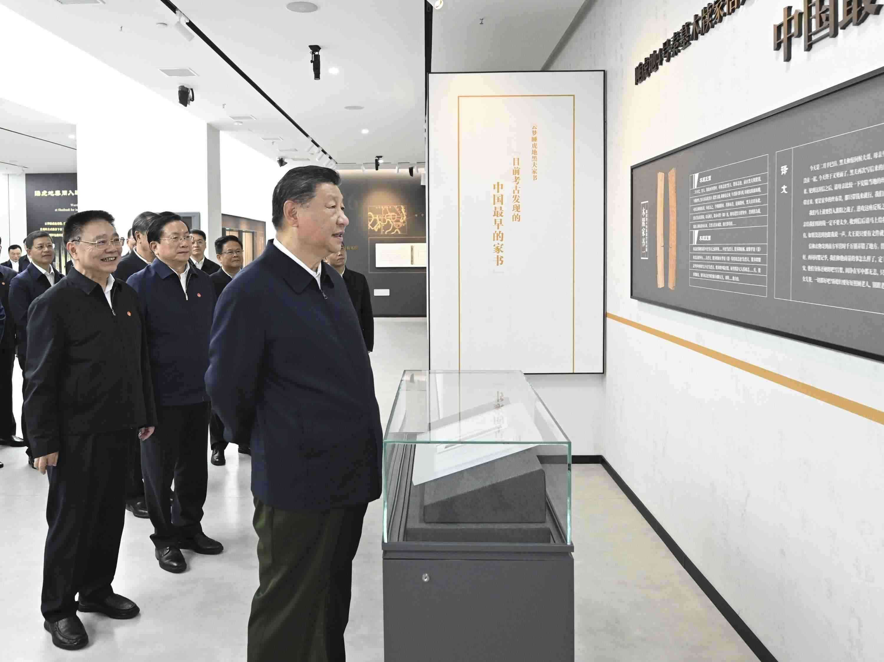 4日下午,習(xí)近平總書記來到湖北孝感市云夢縣博物館,參觀云夢出土秦漢簡牘展,詳細(xì)了解簡牘內(nèi)容、歷史文化價(jià)值和保護(hù)研究情況。習(xí)近平說,古代簡牘非常珍貴,是我們國家信史的重要實(shí)物佐證,要善加保護(hù),做好研究。要不斷通過考古發(fā)掘,為國家歷史提供更多不容置疑的佐證材料。(人民日報(bào)客戶端杜尚澤)