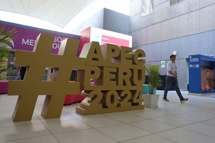 這是11月8日在秘魯利馬拍攝的2024年亞太經(jīng)濟合作組織(APEC)會議標(biāo)識。新華社記者 許睿 攝