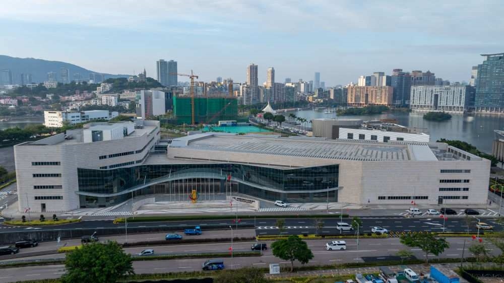 中國(guó)與葡語(yǔ)國(guó)家商貿(mào)合作服務(wù)平臺(tái)綜合體大樓(2024年12月10日攝,無人機(jī)照片)。新華社發(fā)(張金加 攝)