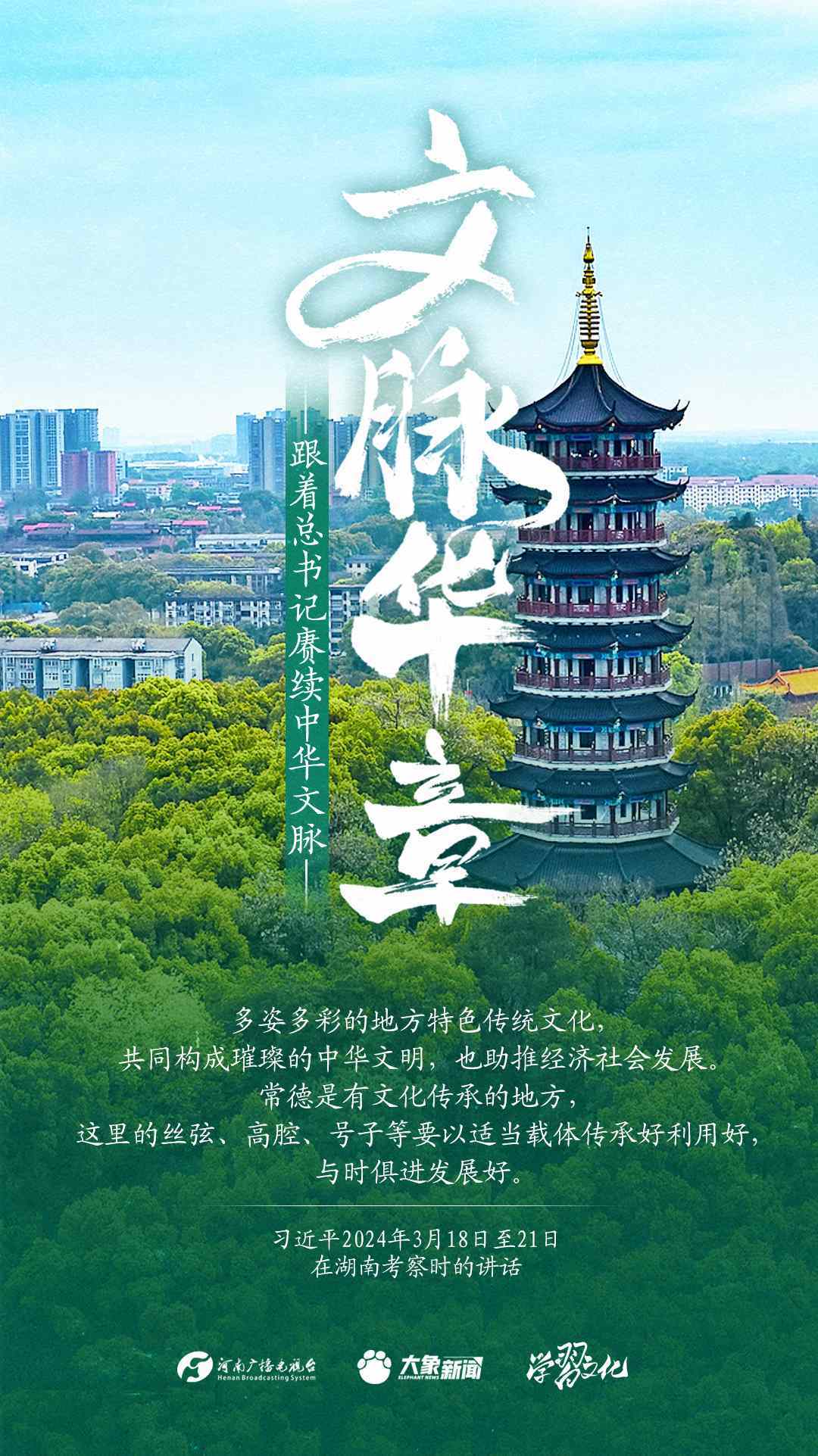 習(xí)近平總書記高度重視中華優(yōu)秀傳統(tǒng)文化的繼承和弘揚(yáng)。2024年,總書記一如既往,念茲在茲。在赴地方考察、主持召開重要會(huì)議等眾多場合,多次對(duì)傳承發(fā)展中華優(yōu)秀傳統(tǒng)文化作出重要講話重要指示。大象新聞邀您一起,跟著總書記賡續(xù)中華文脈,推動(dòng)中華優(yōu)秀傳統(tǒng)文化創(chuàng)造性轉(zhuǎn)化和創(chuàng)新性發(fā)展,在新的起點(diǎn)上繼續(xù)推動(dòng)文化繁榮、建設(shè)文化強(qiáng)國、建設(shè)中華民族現(xiàn)代文明。