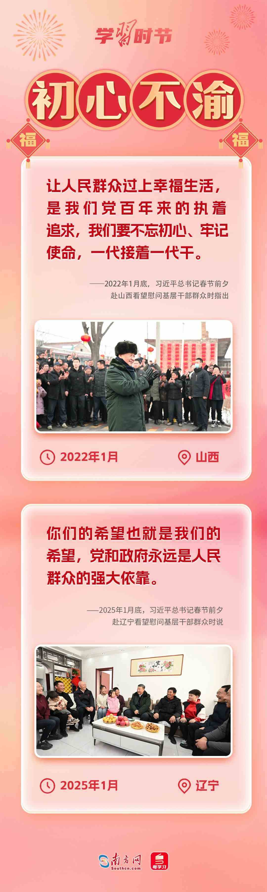 春節(jié)即將到來,1月22日至24日,習(xí)近平總書記來到遼寧給基層干部群眾送上黨中央的關(guān)懷和祝福。黨的十八大以來,每逢春節(jié)前夕,習(xí)近平總書記都要抽出時間,深入基層,同老百姓一起聊家常,關(guān)心大家的柴米油鹽、衣食住行、生活冷暖等具體“小事”。