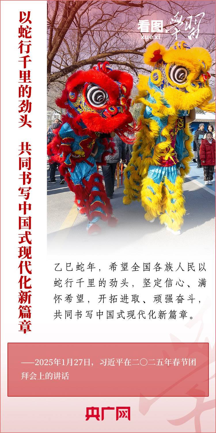 1月27日,中共中央、國務院在北京舉行春節(jié)團拜會,習近平總書記發(fā)表熱情洋溢的講話,向全國各族人民、港澳臺同胞、海外僑胞拜年并致以新春祝福。總書記在講話中深情回顧過去一年中國式現(xiàn)代化取得很不平凡的發(fā)展歷程,“希望全國各族人民以蛇行千里的勁頭,堅定信心、滿懷希望,開拓進取、頑強奮斗,共同書寫中國式現(xiàn)代化新篇章?!币黄饋韺W習!