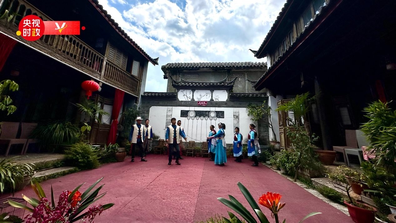 △天地院內(nèi),納西族特色歌舞演出每天都在上演