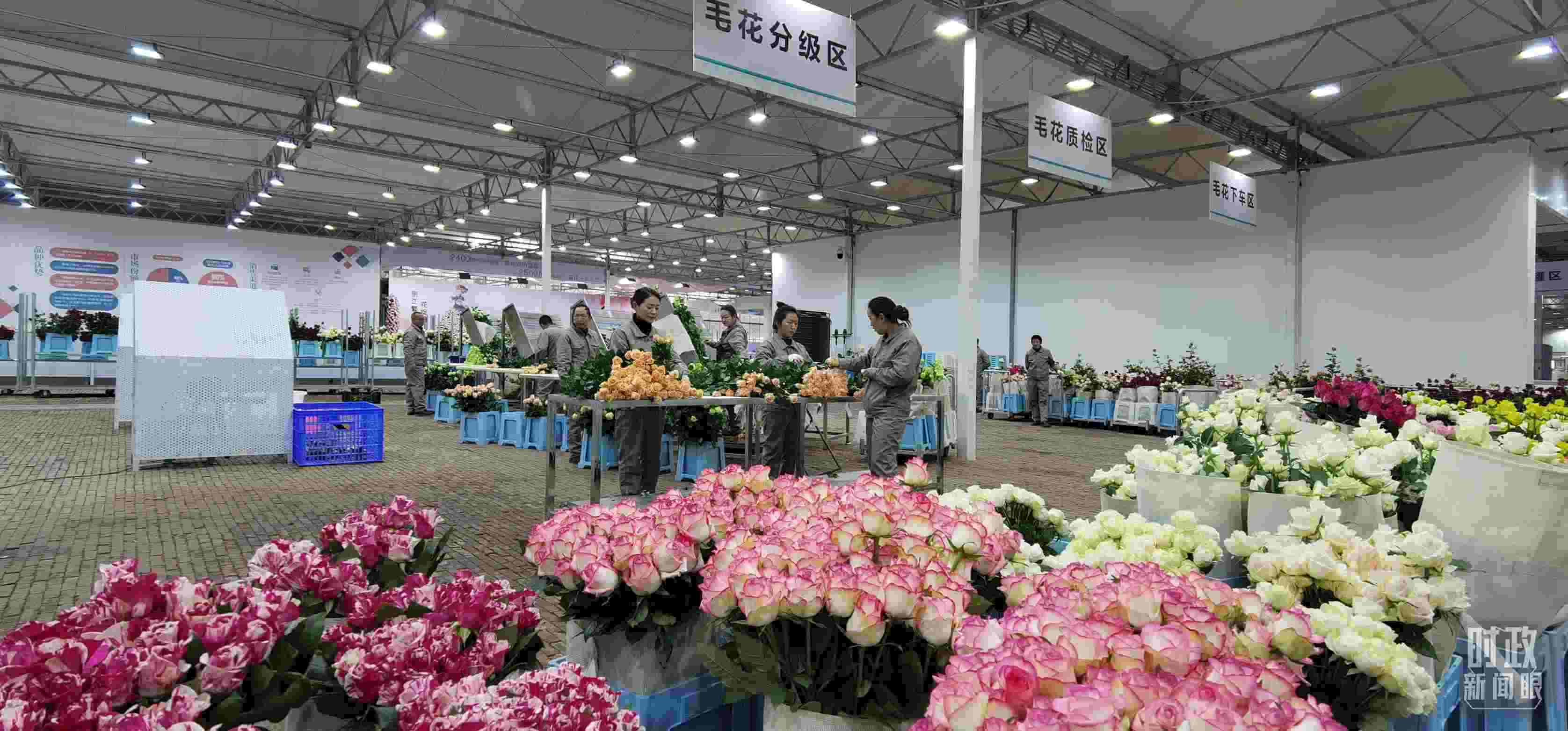 △麗江現(xiàn)代花卉產(chǎn)業(yè)園內(nèi),工人正在分類(lèi)整理鮮花。(總臺(tái)央視記者郭鴻拍攝)