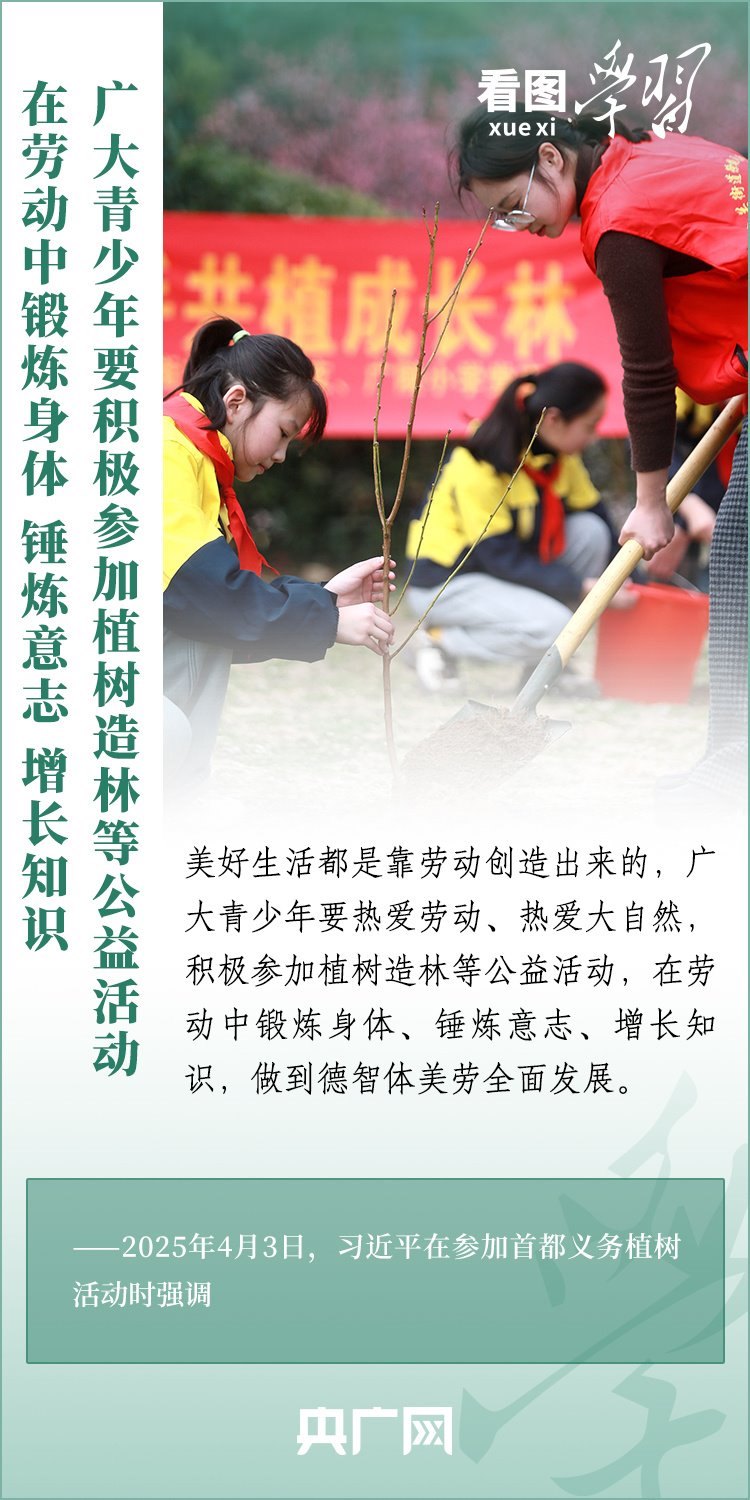 植樹造林是生態(tài)文明建設(shè)重要一環(huán)。4月3日,習(xí)近平總書記參加首都義務(wù)植樹活動(dòng)。在植樹現(xiàn)場(chǎng),總書記高度肯定國(guó)土綠化工作取得來之不易的成績(jī),強(qiáng)調(diào)綠化祖國(guó)必須堅(jiān)持“三綠”并舉、“四庫(kù)”聯(lián)動(dòng),要更加注重“提質(zhì)”“興業(yè)”“利民”,“匯聚共建美麗中國(guó)的磅礴力量,讓祖國(guó)大地更加綠意盎然、生機(jī)勃發(fā)”。一起來學(xué)習(xí)!