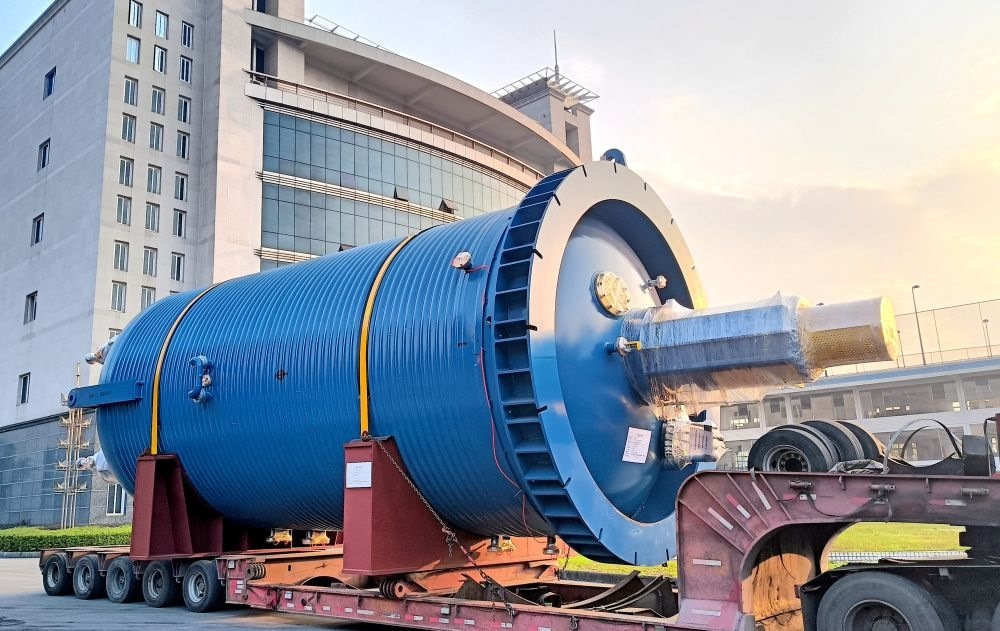 2024年1月3日,岷江實業(yè)集團(tuán)生產(chǎn)的大型化工設(shè)備運(yùn)輸出廠。(受訪者供圖)