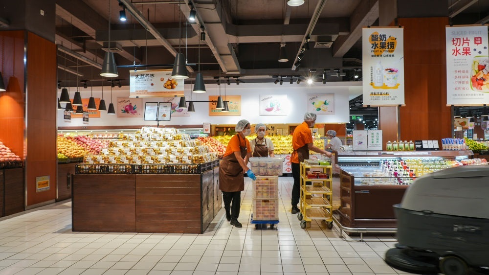 在河南許昌的胖東來(lái)生活廣場(chǎng)店內(nèi),店員正在做當(dāng)天開業(yè)前的準(zhǔn)備工作。新華社記者 劉振坤 攝
