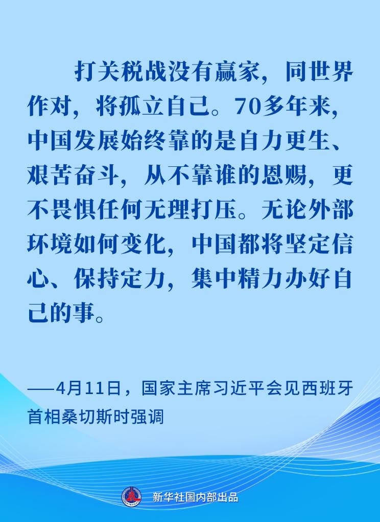 “打關(guān)稅戰(zhàn)沒有贏家,同世界作對(duì),將孤立自己。70多年來,中國(guó)發(fā)展始終靠的是自力更生、艱苦奮斗,從不靠誰的恩賜,更不畏懼任何無理打壓。無論外部環(huán)境如何變化,中國(guó)都將堅(jiān)定信心、保持定力,集中精力辦好自己的事。”