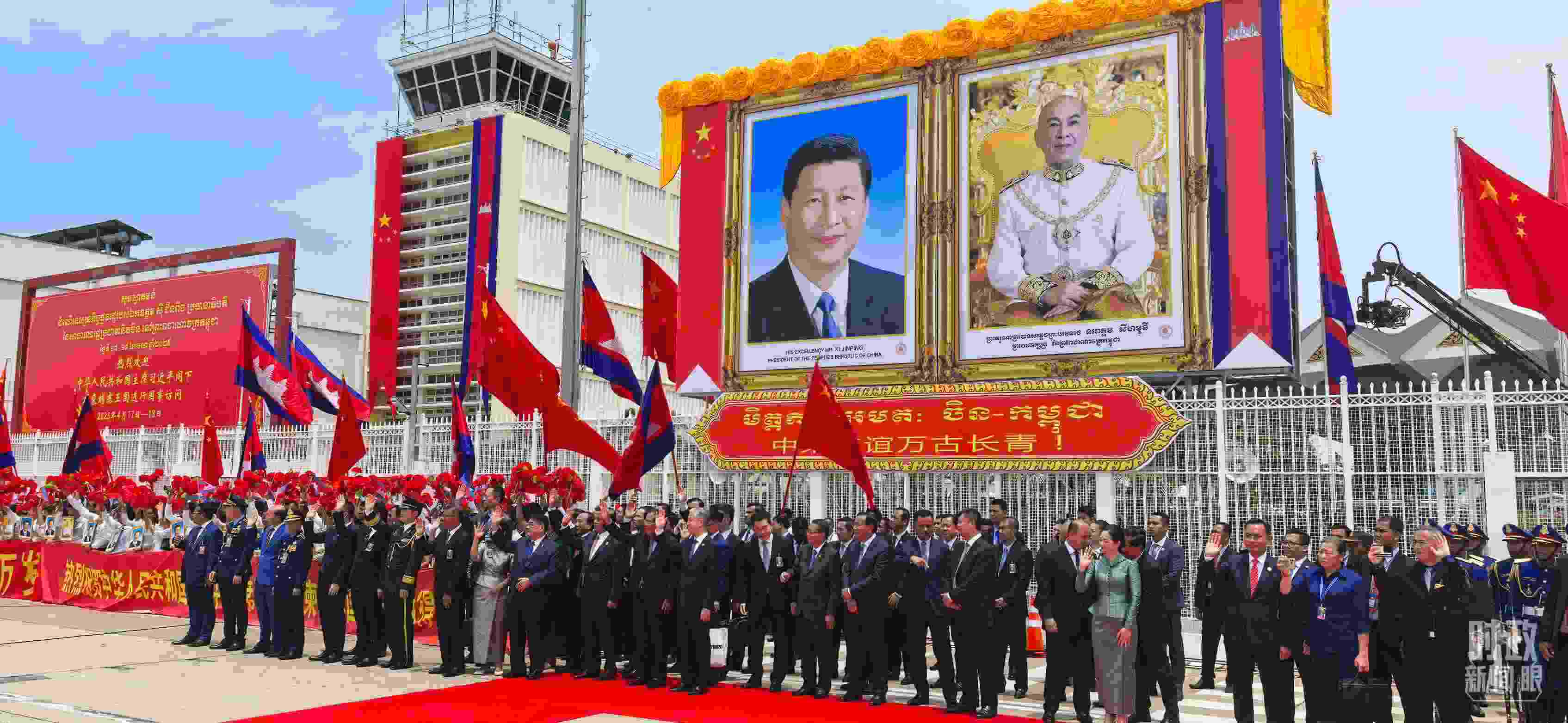△習(xí)主席離開金邊時(shí),柬埔寨領(lǐng)導(dǎo)人和民眾到機(jī)場送行。(總臺(tái)央視記者周志國拍攝)