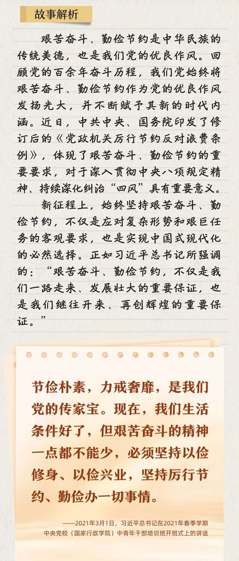 近日,中共中央、國務院印發(fā)修訂后的《黨政機關厲行節(jié)約反對浪費條例》,進一步弘揚艱苦奮斗、勤儉節(jié)約的優(yōu)良作風。今天,推出《聽習近平講作風故事⑤丨一根燈芯》,與您一起學習毛澤東等老一輩革命家艱苦奮斗、勤儉節(jié)約的故事。