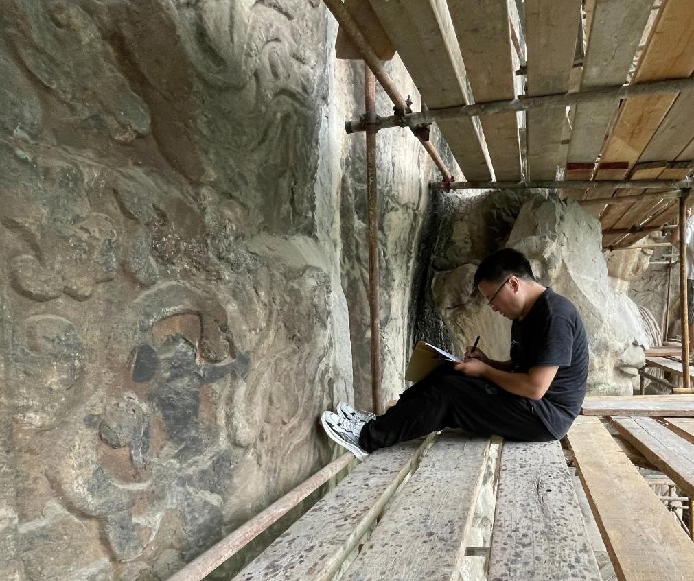 谷宏耀在龍門石窟進(jìn)行考古調(diào)查。(受訪者供圖)