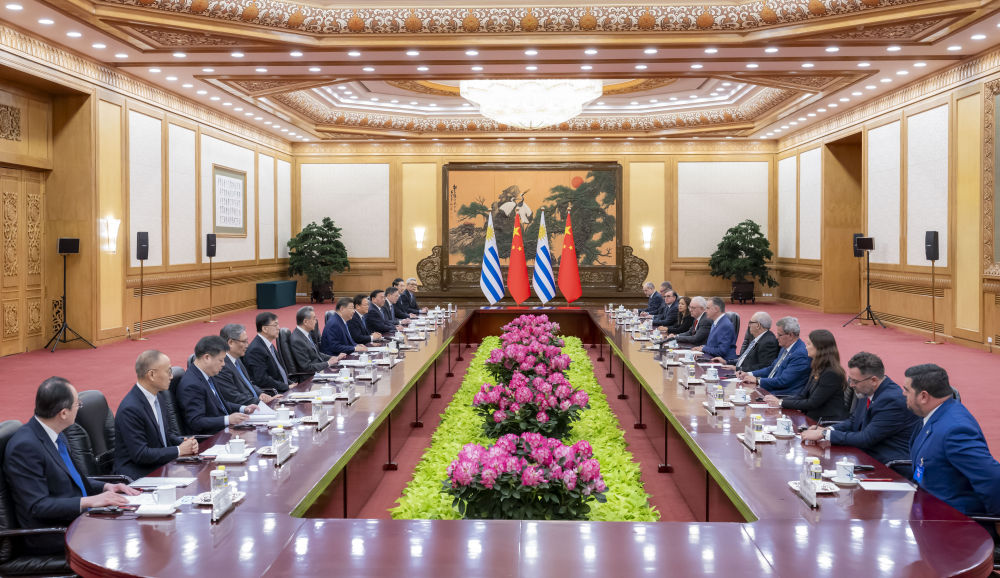 2月3日,國家主席習(xí)近平在北京同來華進行國事訪問的烏拉圭總統(tǒng)奧爾西舉行會談。