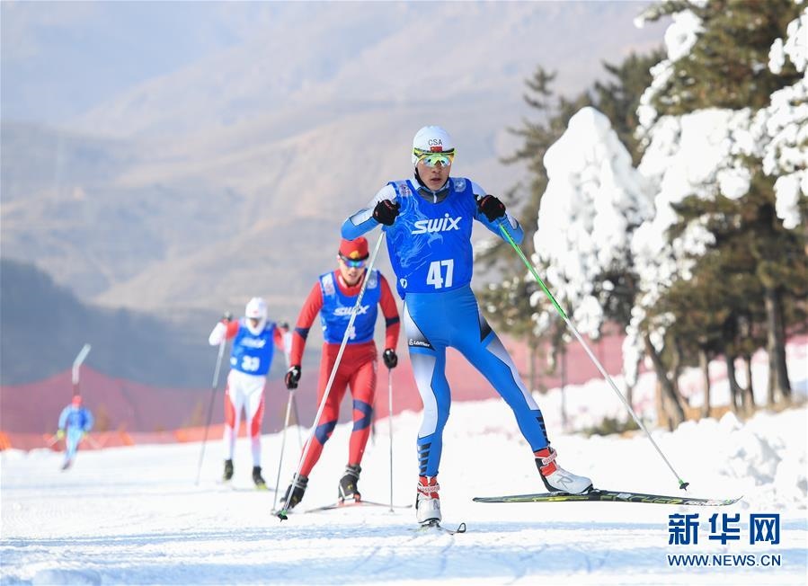 1月11日至1月15日,2018-2019年度全國青少年越野滑雪錦標(biāo)賽在內(nèi)蒙古烏蘭察布市涼城縣岱?;﹫?chǎng)舉行。這是選手在青年組男子30公里集體出發(fā)(自由技術(shù))比賽中(1月12日攝)。新華社記者彭源攝