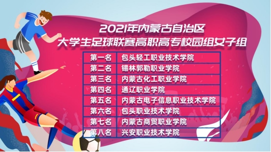 近年來(lái),內(nèi)蒙古校園足球蓬勃發(fā)展,多彩的校園足球賽事與活動(dòng)呈現(xiàn)出不斷發(fā)展的生機(jī)與活力。作為全區(qū)舉辦規(guī)模最大、參賽人數(shù)最多、覆蓋面最廣、專為大學(xué)生量身打造的校園足球賽事,大學(xué)生足球聯(lián)賽成為我區(qū)各高校學(xué)子充分展示青春活力與頑強(qiáng)斗志的重要舞臺(tái)。2021年聯(lián)賽中,共設(shè)高職校園、高職超級(jí)、本科校園和本科超級(jí)組(男、女)共7個(gè)組別。錫林郭勒職業(yè)學(xué)院、包頭輕工職業(yè)技術(shù)學(xué)院、呼和浩特民族學(xué)院分別獲得高職校園男子組、女子組、超級(jí)男子組冠軍;內(nèi)蒙古農(nóng)業(yè)大學(xué)奪得本科校園男子、女子組冠軍;內(nèi)蒙古科技大學(xué)、內(nèi)蒙古大學(xué)分別奪得本科超級(jí)組男子、女子組冠軍。