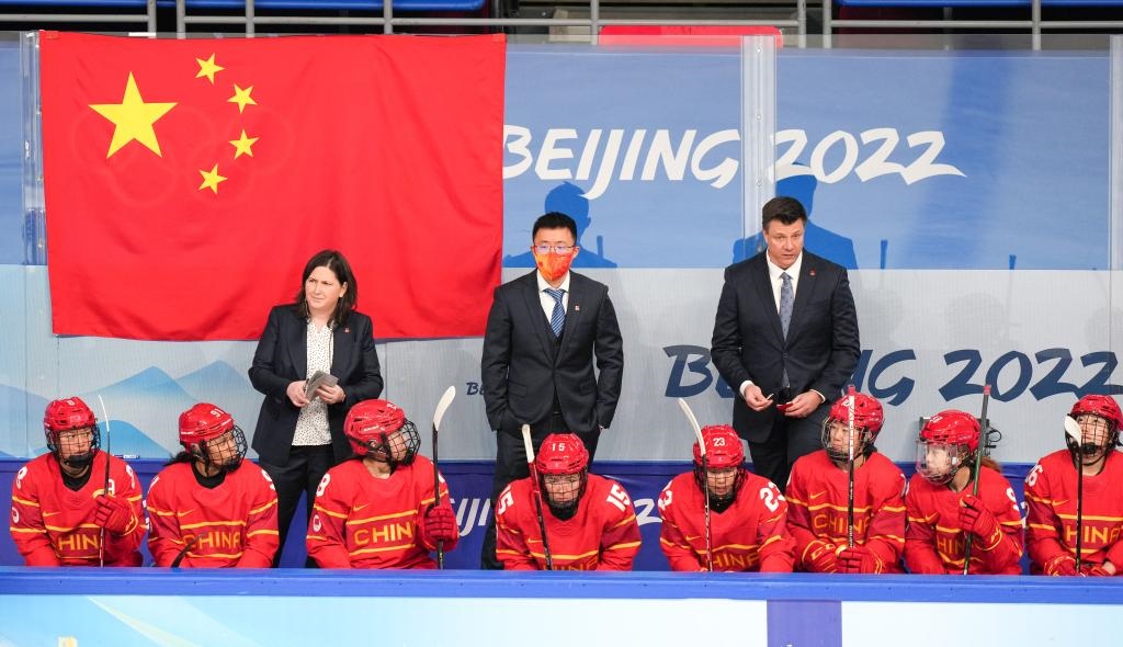 2月6日,中國隊(duì)球員在場(chǎng)邊觀戰(zhàn)。新華社記者 孟永民 攝