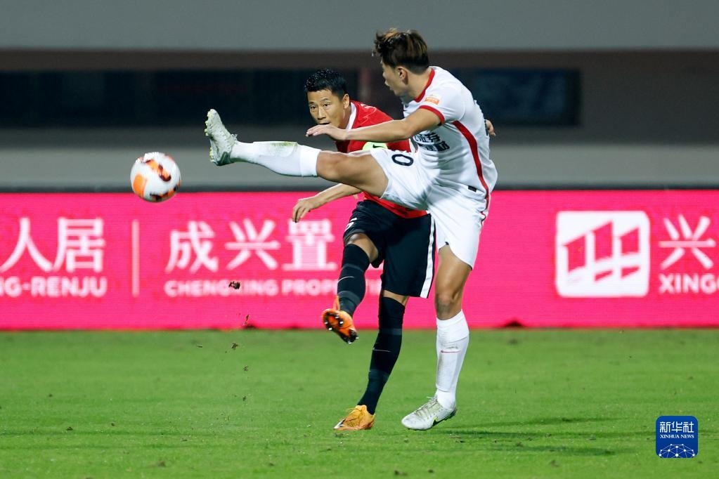 11月7日,長春亞泰隊球員埃里克(左)在比賽中和成都蓉城隊球員周定洋拼搶。新華社記者 沈伯韓 攝