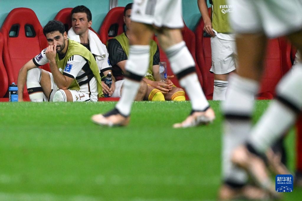 11月27日,德國隊(duì)球員伊爾凱·京多安(左一)與托馬斯·穆勒(左二)在比賽中被替換下場后。新華社記者 李尕 攝