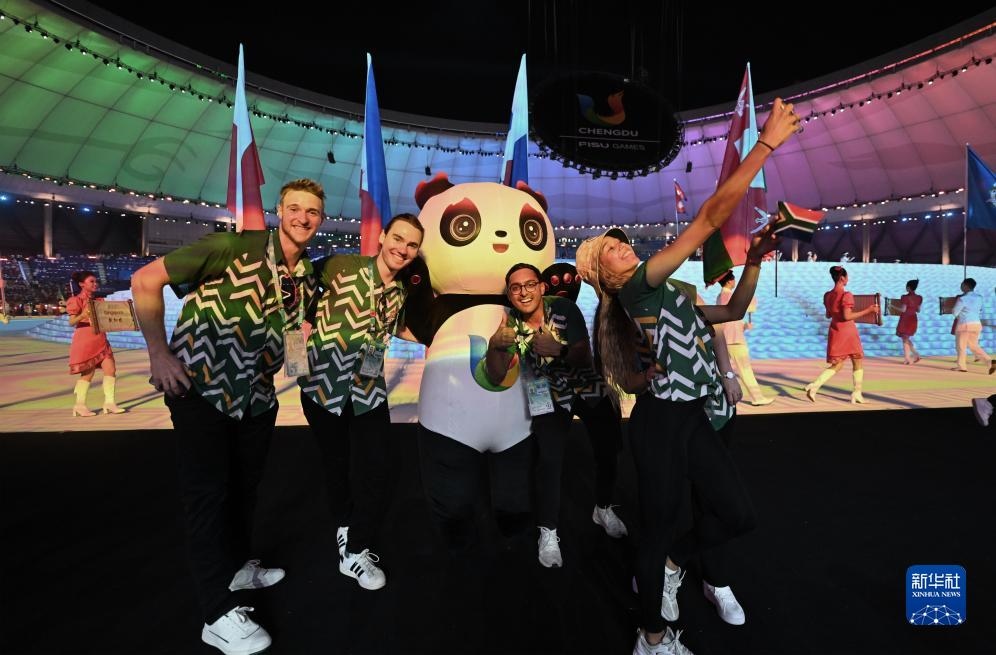 7月28日,南非大學(xué)生體育代表團在開幕式上入場。