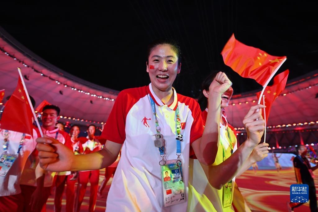 7月28日,中國大學(xué)生體育代表團在開幕式上入場。