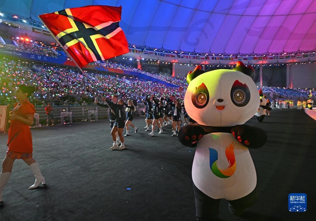 7月28日,挪威大學(xué)生體育代表團在開幕式上入場。
