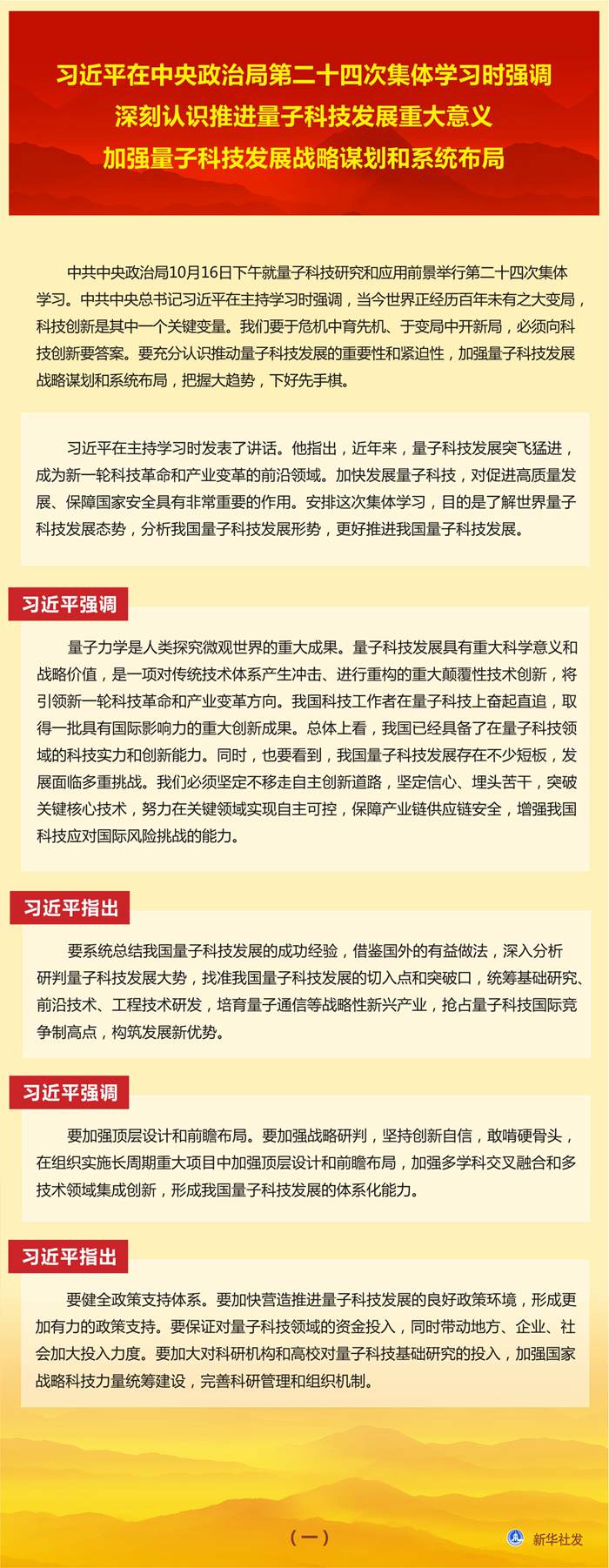 習近平在中央政治局第二十四次集體學習時強調 深刻認識推進量子科技發(fā)展重大意義 加強量子科技發(fā)展戰(zhàn)略謀劃和系統布局