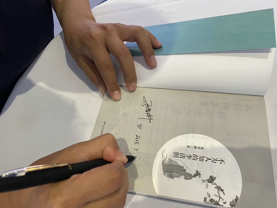 圍繞某些宋人作品中記載的李清照“流落以死”、李清照卒年的多版本說法、李清照的詩詞風格為什么會從婉約轉變到豪放等“疑點”,張晉閣先生為大家講述了《不為人知的李清照》的寫作緣由、研究經(jīng)歷、文字表達形式和內心希冀。隨后,兩位讀者分別提出“您最喜歡李清照的哪一首詩詞”、“對李清照的寫作產(chǎn)生深遠影響的人是誰”這兩個問題,張晉閣先生分享了自己的看法并朗誦了優(yōu)美的詩詞佳作,現(xiàn)場交流、互動氣氛熱烈。活動結束后,張晉閣先生為讀者朋友們簽名留念。多位年輕讀者表示,通過閱讀《不為人知的李清照》,加深了他們對古典詩詞的喜愛。